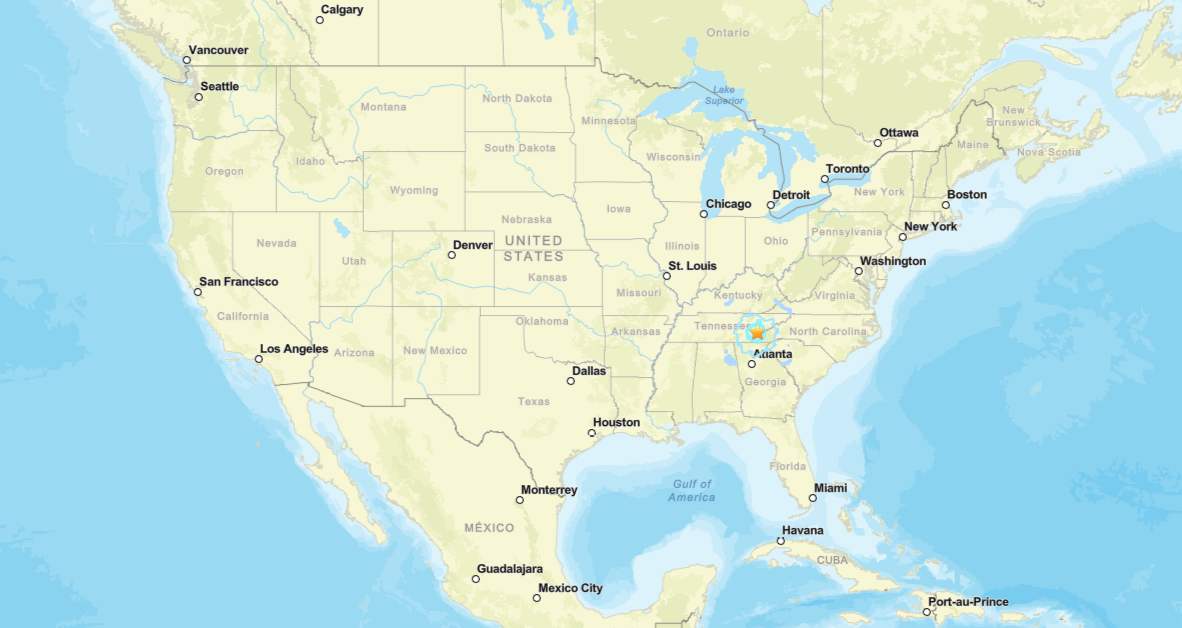 Um terremoto leve de magnitude 4,1 a sudeste de Greenback, no Tennessee, foi sentido em toda a região sudeste dos Estados Unidos na manhã deste sábado (10).
