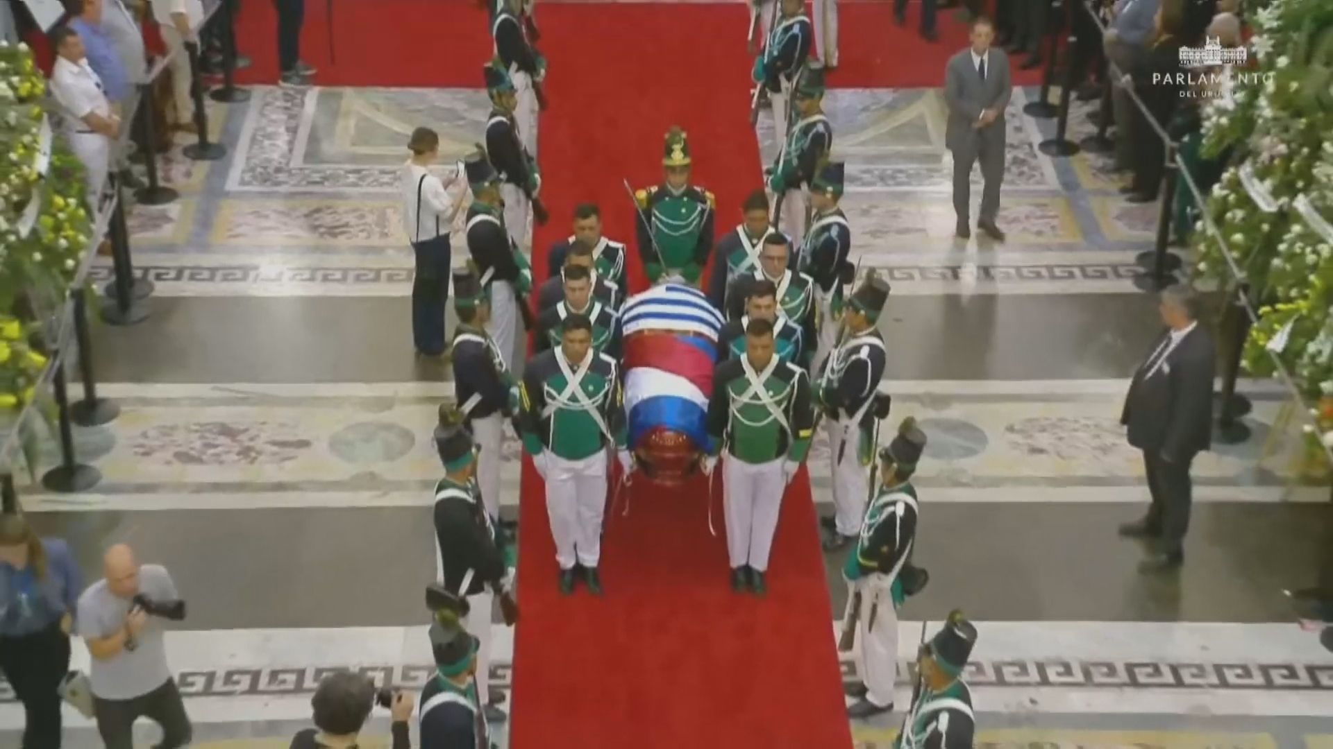 O cortejo teve início na sede da Presidência uruguaia, onde o atual presidente, Luis Lacalle Pou, colocou a bandeira nacional sobre o caixão de Mujica.