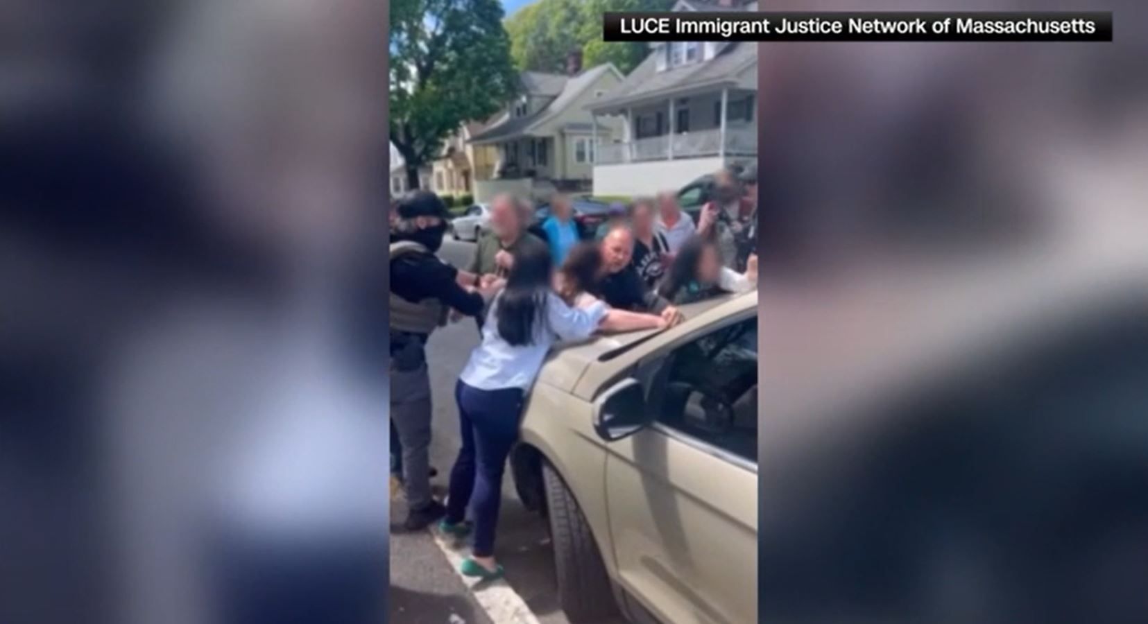 Vídeos mostraram agentes da Imigração e Alfândega dos EUA (ICE, na sigla em inglês) prendendo uma mulher em Worcester, enquanto várias pessoas tentam bloquear a ação das autoridades. Segundo a WCVB, várias detenções foram feitas no local em razão dos protestos.