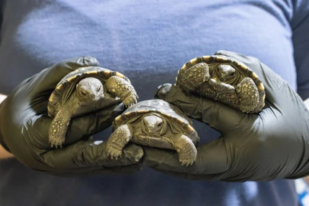 As tartarugas-das-galápagos estão criticamente ameaçadas de extinção, e esses filhotes fazem parte de um programa da Associação de Zoológicos e Aquários que trabalha para manter espécies como essa vivas.